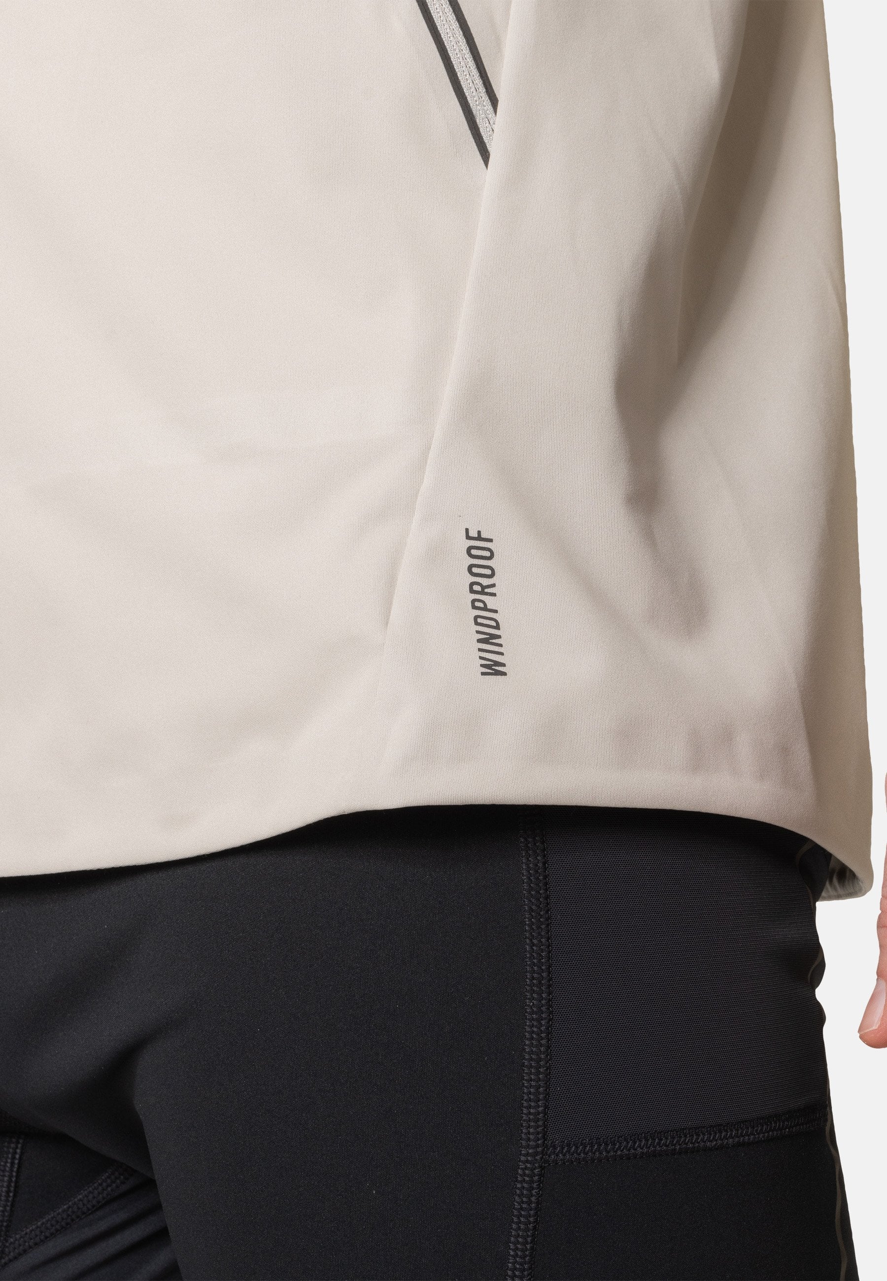 Efficiënte bescherming tegen afkoeling door wind. Afhankelijk van de windsnelheid kan de gevoelstemperatuur vaak aanzienlijk lager zijn dan de gemeten buitentemperatuur. WINDPROOF van Odlo vermindert de effecten van afkoeling door de wind. Dit materiaal is extreem ademend, winddicht en waterafstotend.
