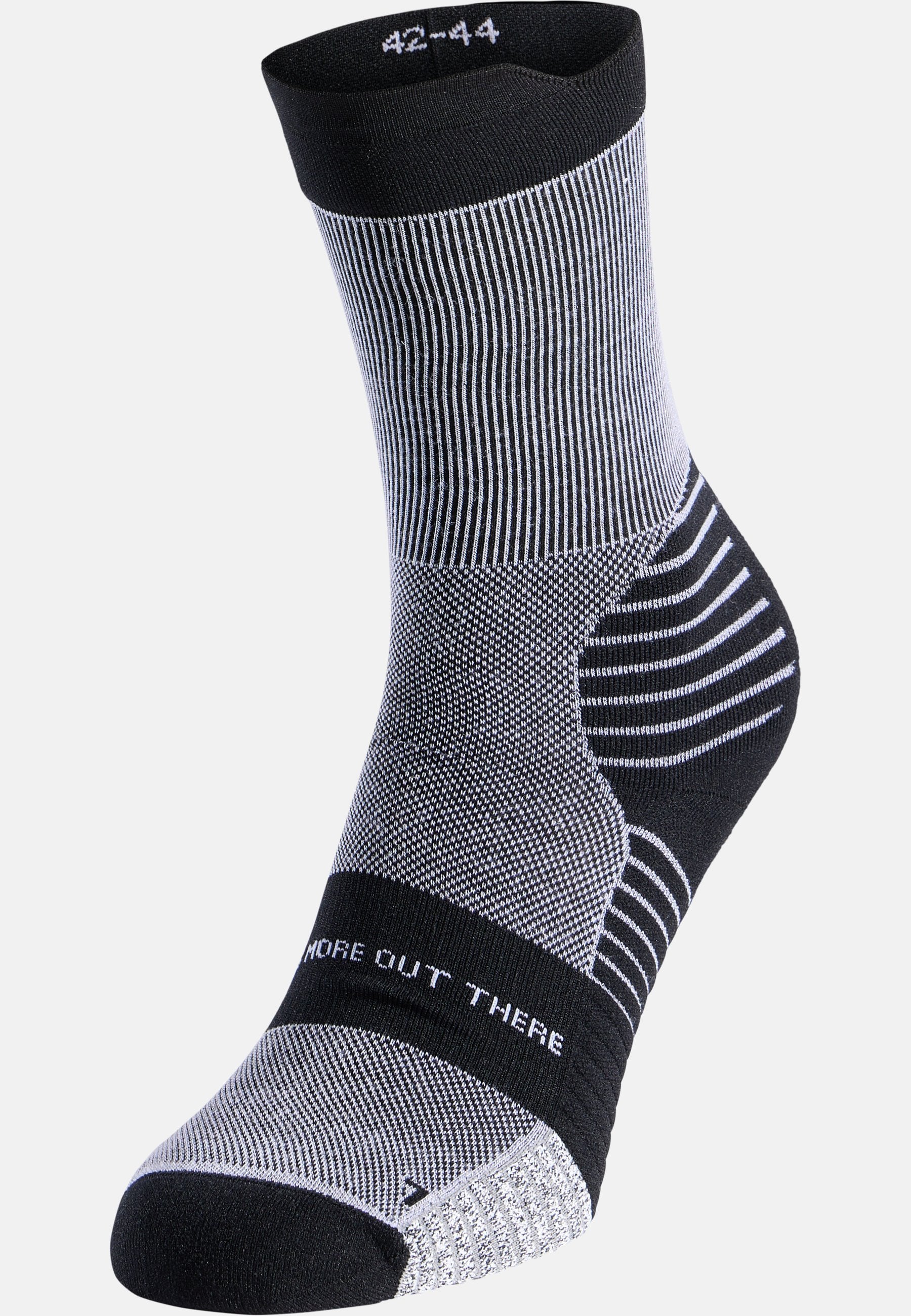 Disse legghøye løpesokkene er laget for fotturer og terrengløp og har en blanding av naturlig merinoull med syntetiske fibre som bidrar til å regulere fottemperaturen og transportere bort fuktighet når terrenget, og pulsen din, begynner å stige. Laget sømløst av anti-skligarn, slik at føttene holder seg på plass uten å gnisse. Ventileringssoner med netting gir pusteevne, og demping i tå og hæl gir komfort fra første til siste steg.