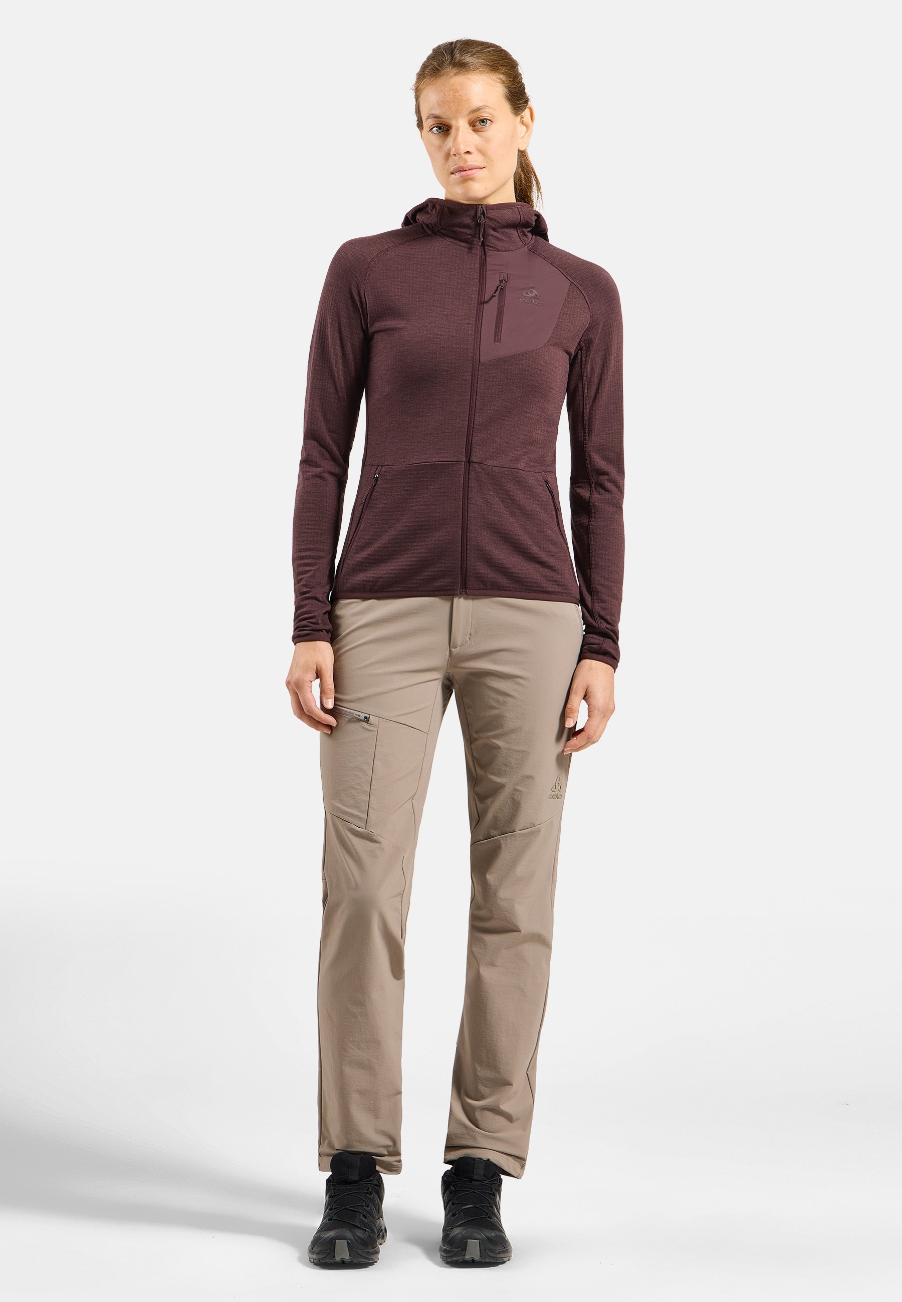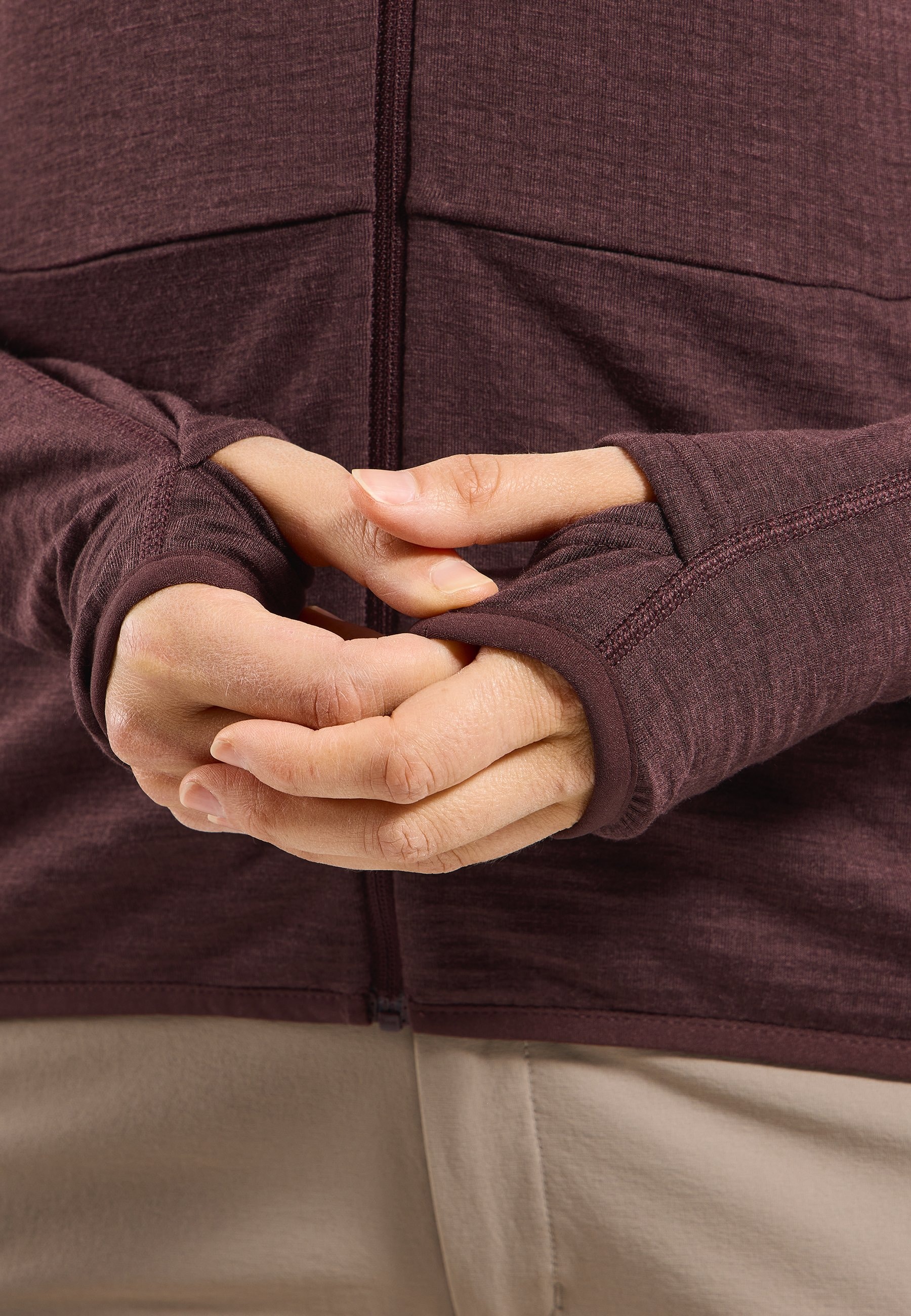 Made with a grid stretch fleece combining merino wool and recycled polyester, the Ascent mid layer hooded zip is the perfect companion for a cool start, well-earned lunch at the peak, or the lift back down. The durable wool blend material is great for repeated wears, while the grid pattern traps air and helps retain warmth. It's finished with small yet appreciated conveniences: three zippered pockets, thumb loops and a snug fitting hood. Durability and warmth for your next alpine adventure.